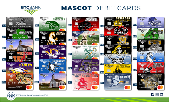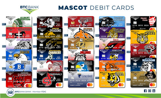 Choose a debit card with your favorite local school’s mascot on it and we’ll donate 7.5¢ to that school for every swipe made! The more you swipe, the more money you earn for the school at no cost to you!